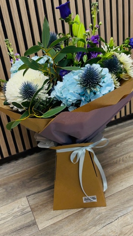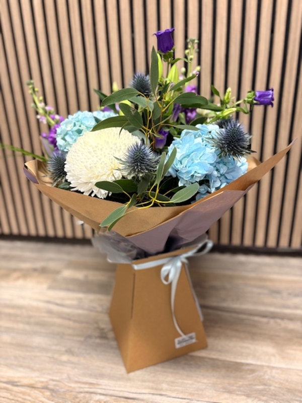 Beautiful hues of ivory, white and blues are all included in our new bouquet "Eloise".