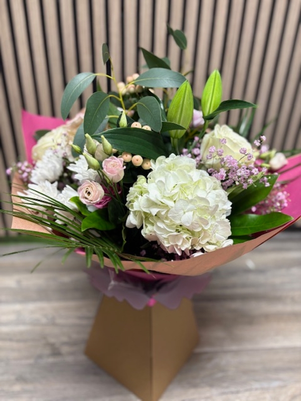 Soft tones of blush pink, ivory and white are paired together by our florists to make our Francesca bouquet.